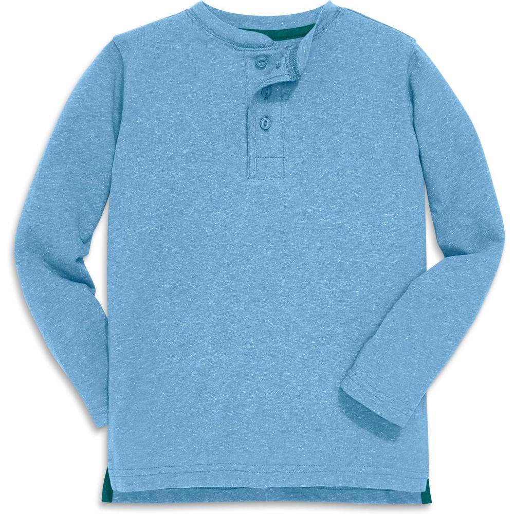 Primary Kids Heathered Long Sleeve Henley Tee – Soft Cotton Blend Shirt for Boys & Girls, Textured Everyday Layer(Cornflower)