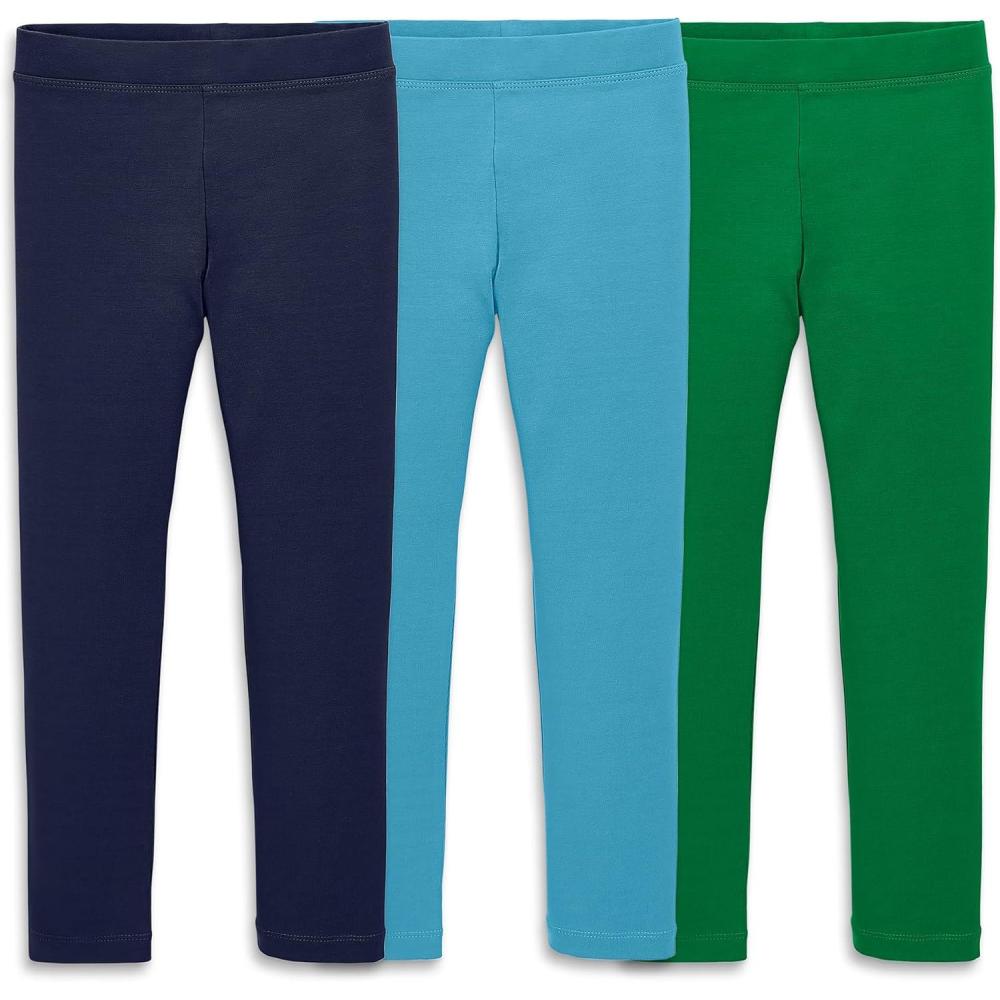 Primary Kids Legging 3-Pack – Soft Cotton Stretch Pants for Toddlers & Kids, Everyday Pull-On Leggings with No-Roll Waistband(Navy Storm & Grass)